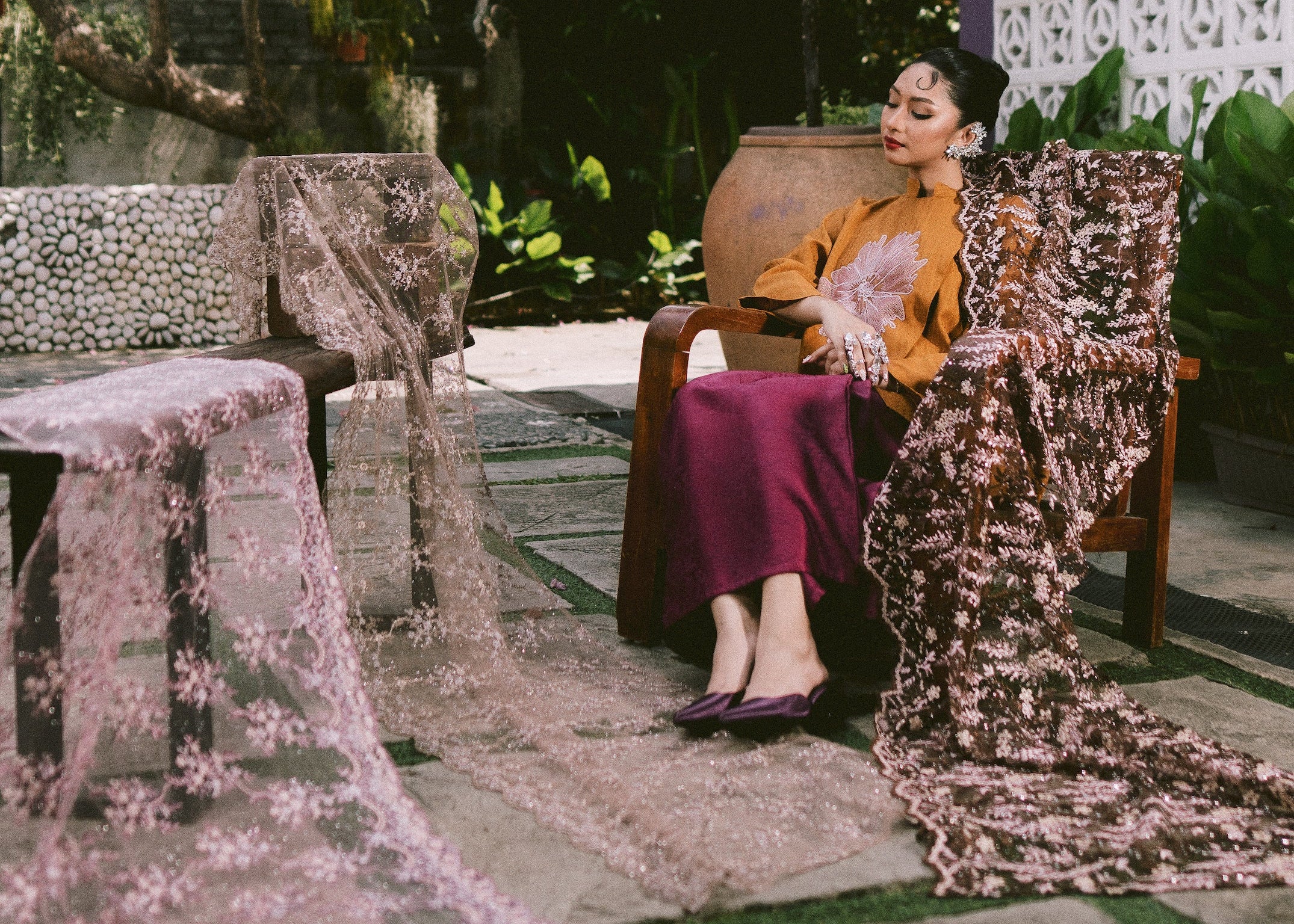 The RIMBA collection is for the Gadis-Gadis Qusantara who, like the forest, embody a beauty that is quiet yet profound, and a mystery that lingers beyond words. With every step, she moves with effortless grace, carrying a strength that is soft, timeless, and unspoken.