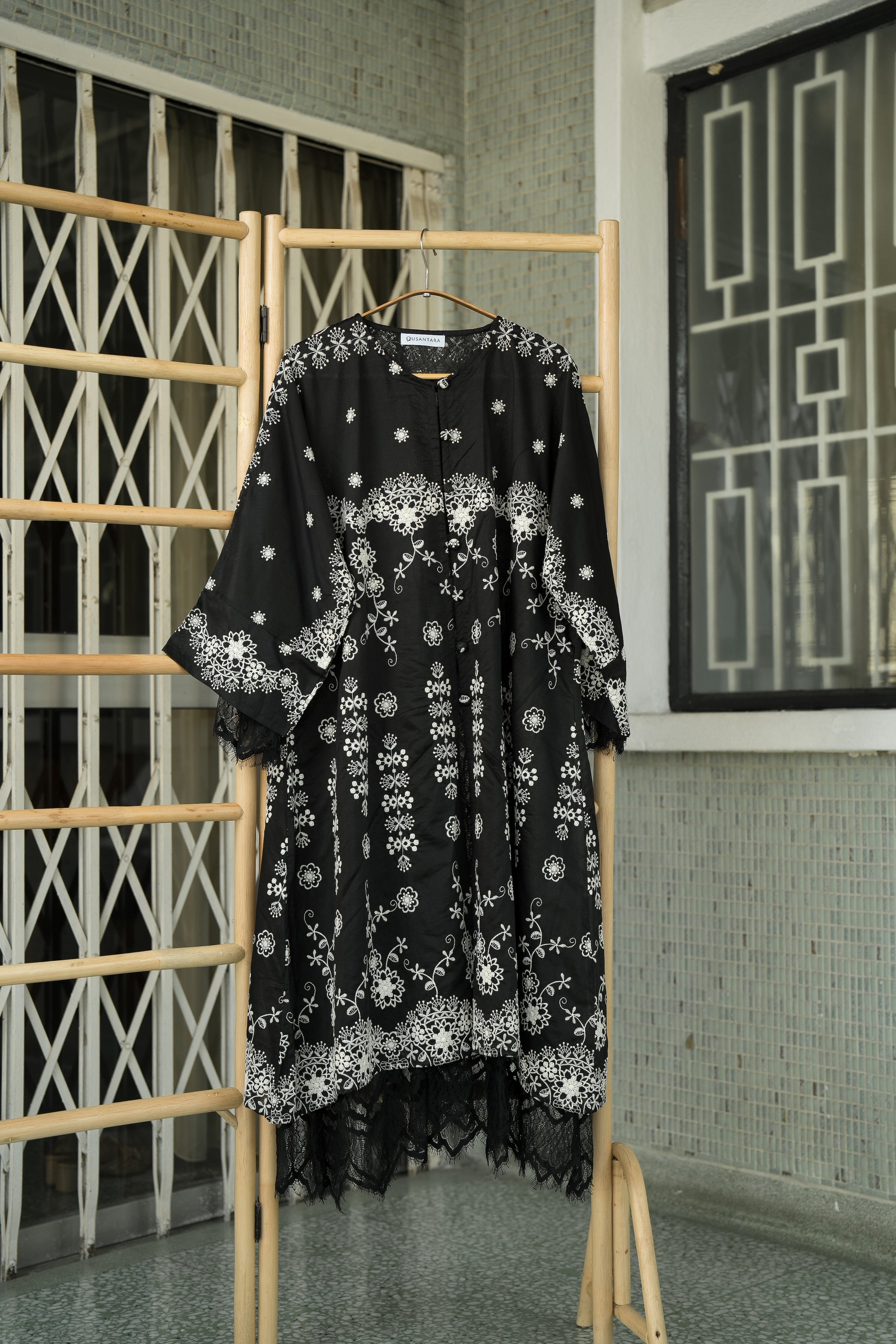 Kasih Lace Kurung Top in Black with Ivory Embroidery