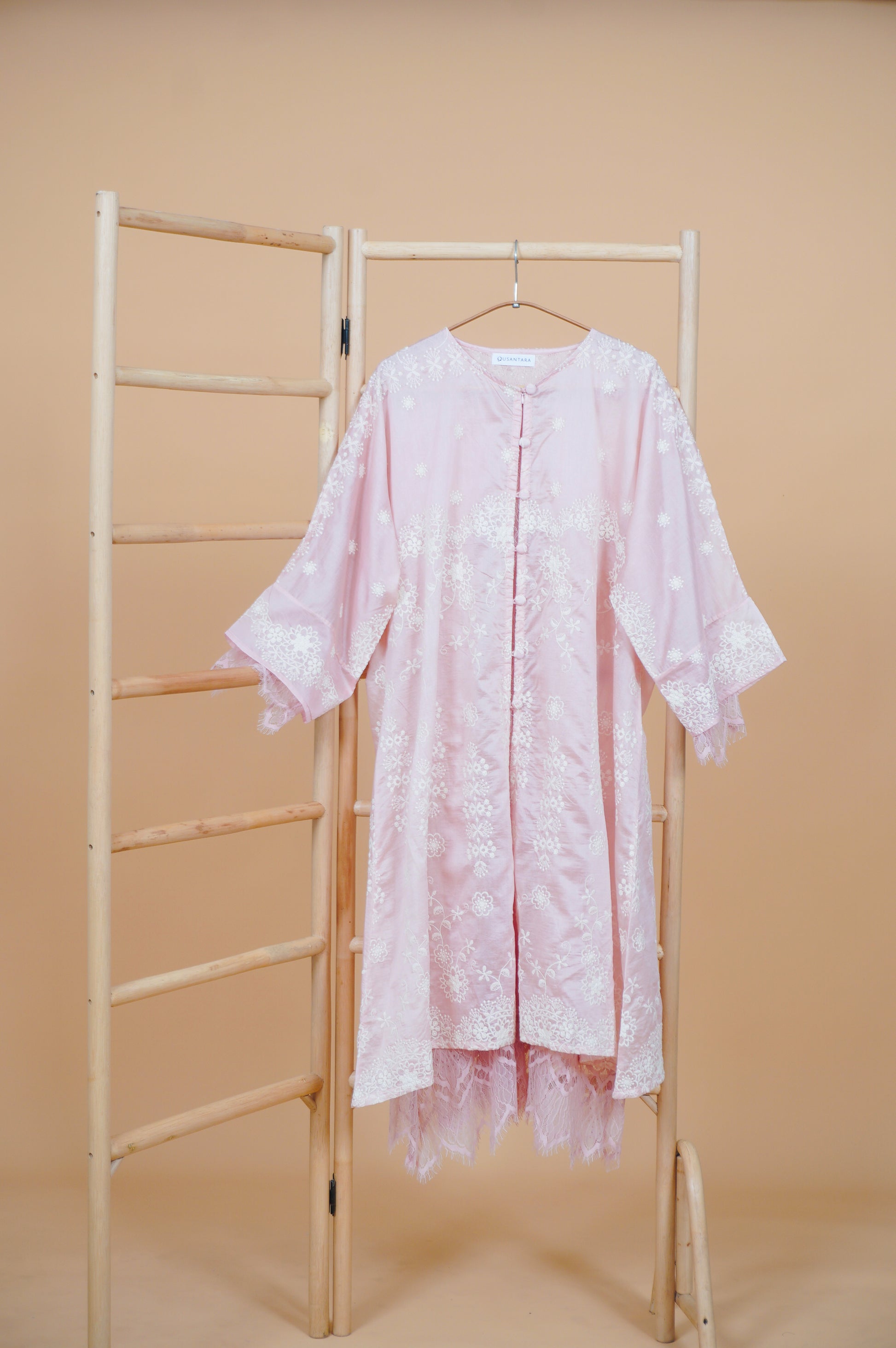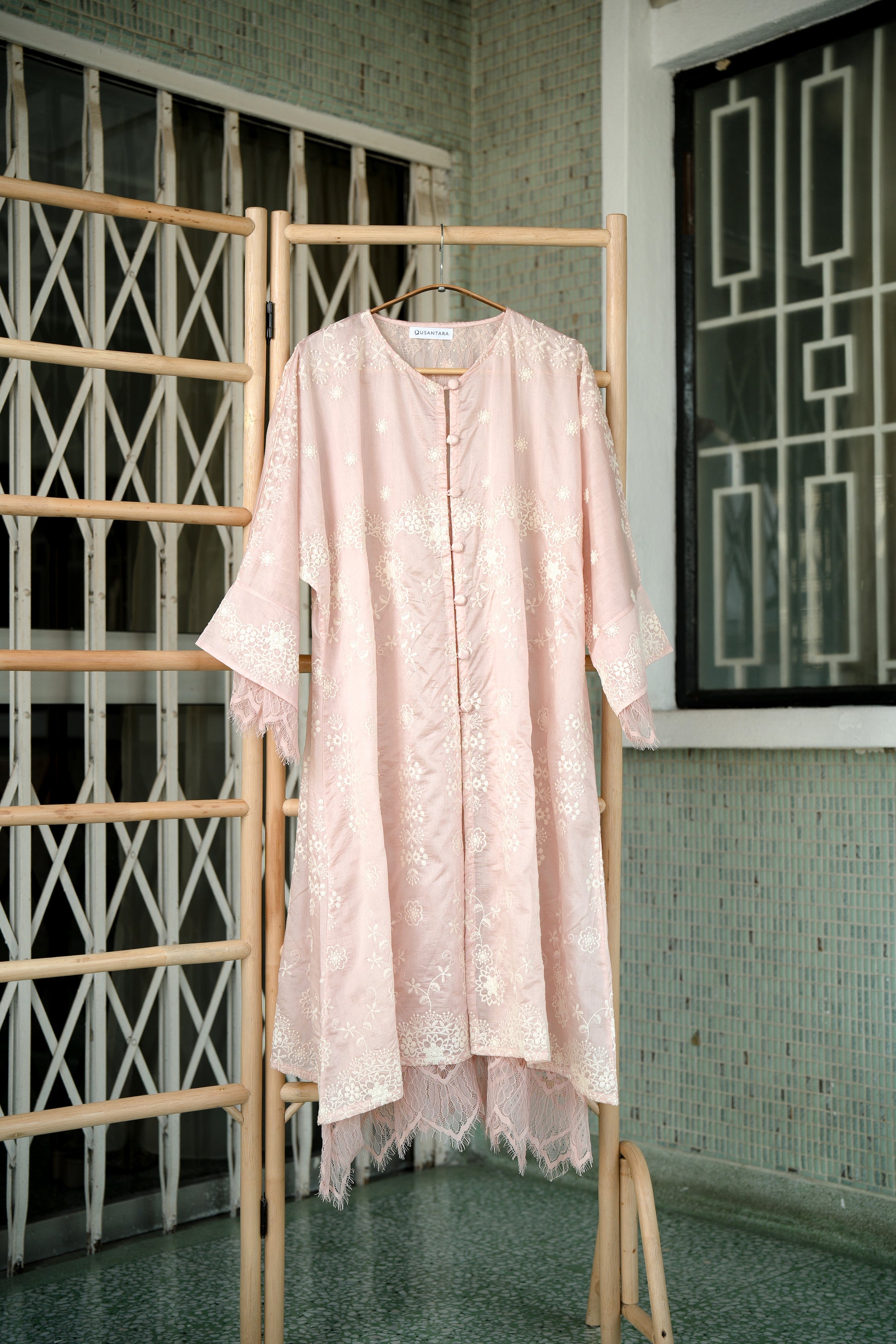 Kasih Lace Kurung Top in Soft Pink with Ivory Embroidery