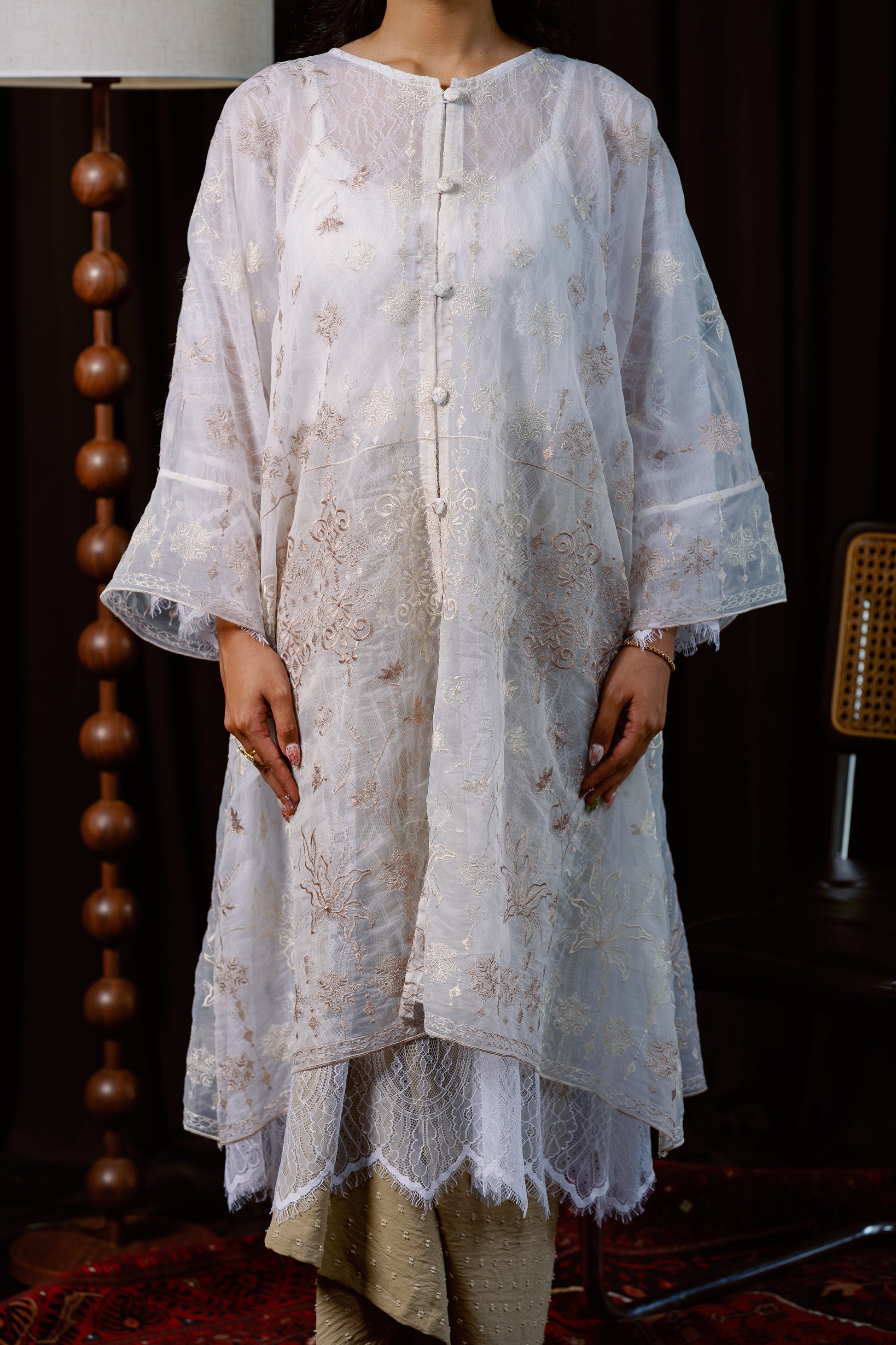 Designed for both beauty and practicality, it is finished with 7 delicate buttons and a half zipper on the inner lace, ensuring a comfortable and seamless fit. Perfect for those who appreciate sophistication with a touch of tradition.