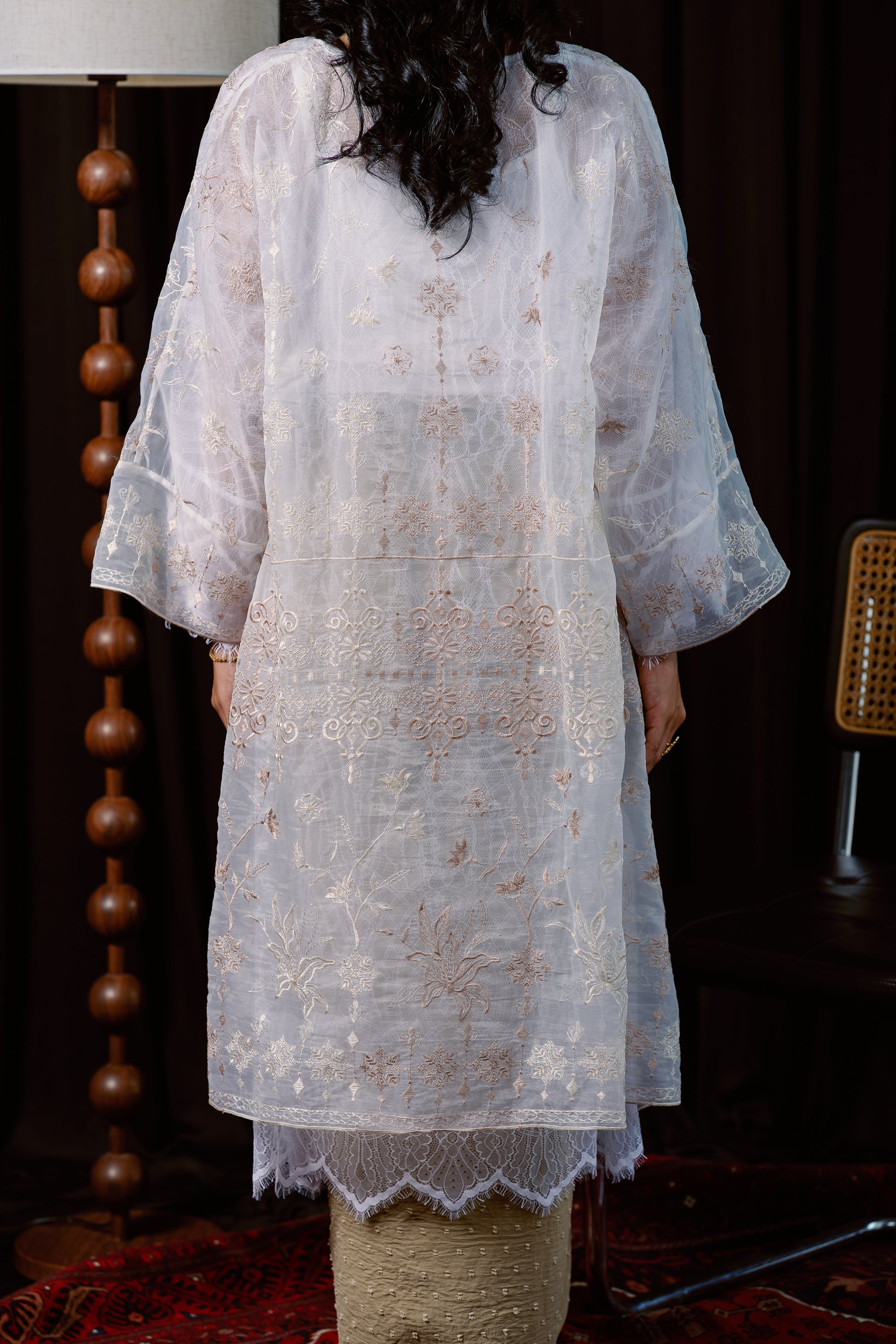 Ratna Lace Kurung Top in White with Nude Embroidery