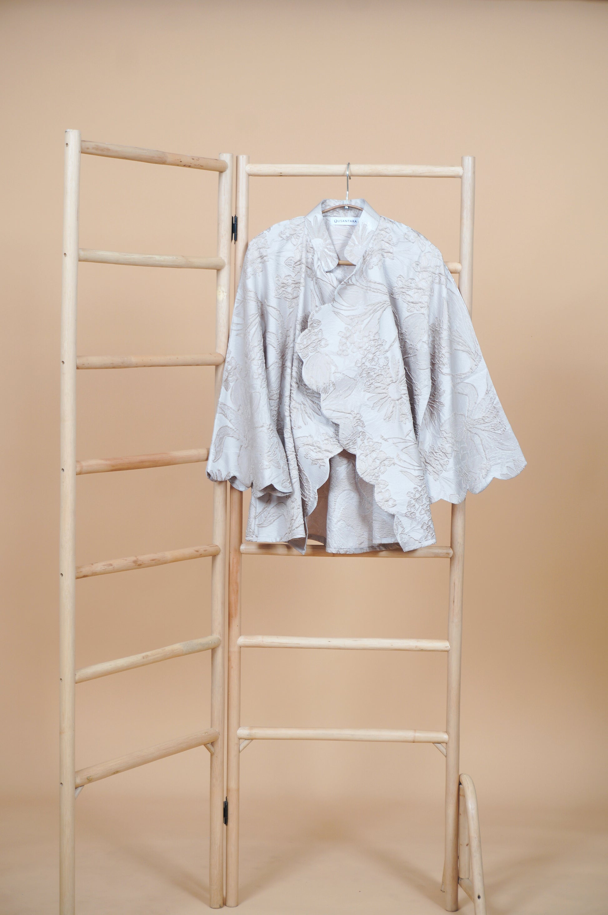 Bold yet graceful, the Renjana Janggan Scallop Buttonless Top is the epitome of refined elegance. Crafted from rich jacquard brocade, it simply exudes understated luxury.