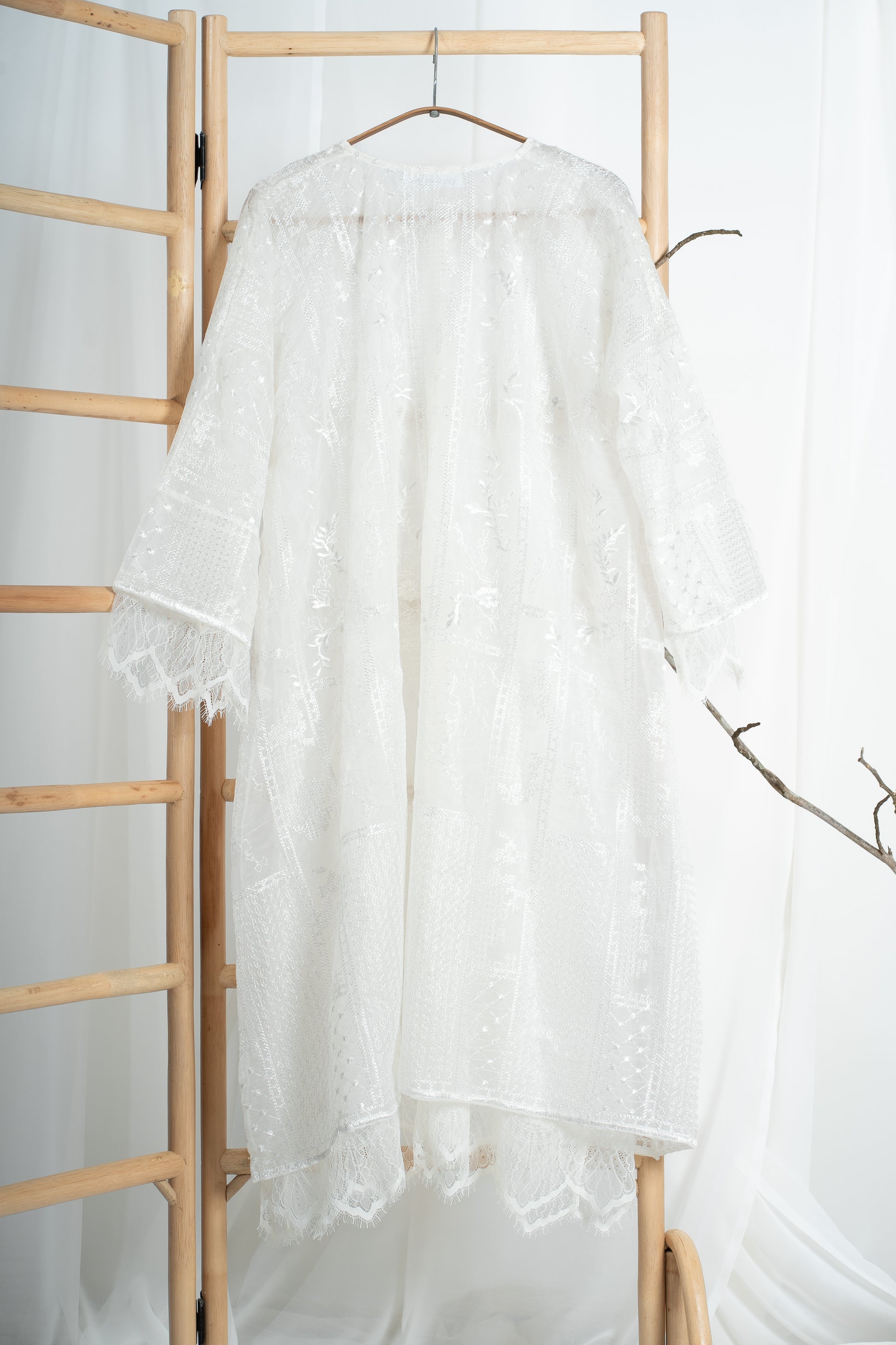 Designed for both beauty and practicality, it is finished with 7 delicate buttons and a half zipper on the inner lace, ensuring a comfortable and seamless fit. Perfect for those who appreciate sophistication with a touch of tradition.